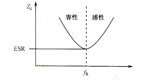 电容的容抗(XC)在低频率范围内随着频率的增加逐步减小,频率继续增加 达到中频范围时电抗(XL)降至 ESR 的值。当频率达到高频范围时感抗(XL) 变为主导,所以阻抗是随着频率的增加而增加。