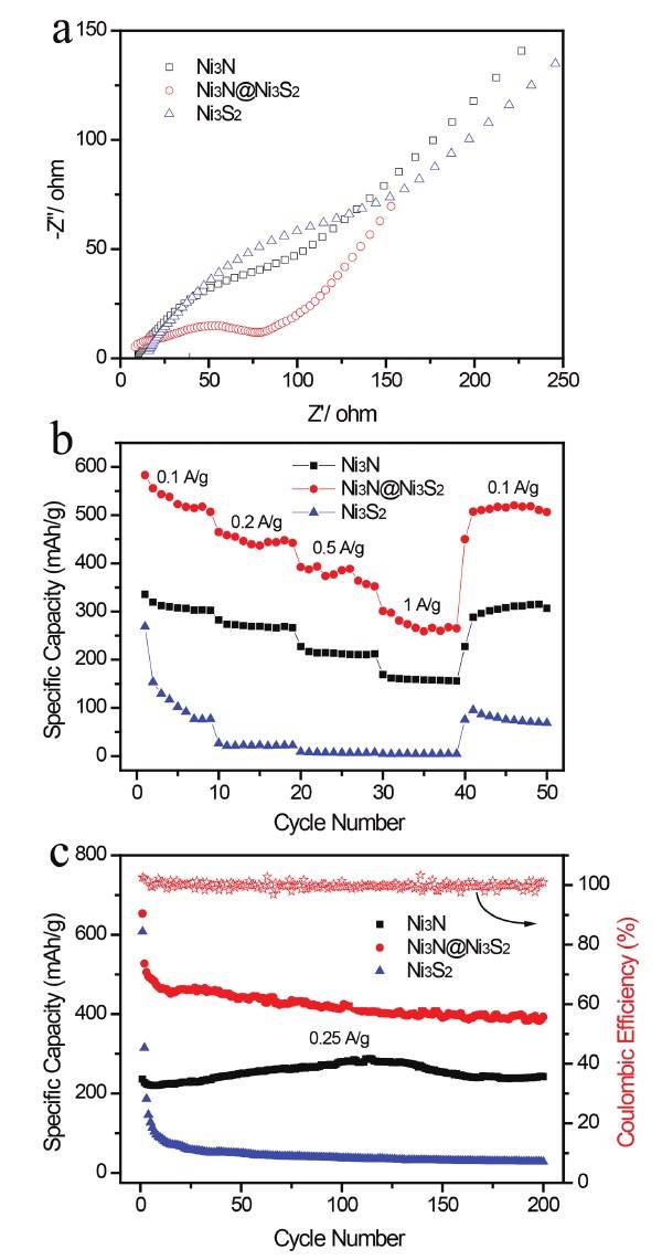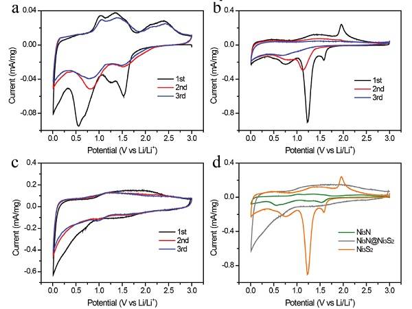 导读:研究发现:Ni3N和Ni3S2之间的相边界是导致复合材料高储锂容量的关键因素。Ni3N较为出色的赝电容特性和Ni3S2较为理想的扩散控制型容量形成协同效应,共同提升了复合材料的电化学储能性能。通过界面失配和赝电容特性和结合,研究人员为未来高性能电化学储能器件的设计提供了新的思路参考。